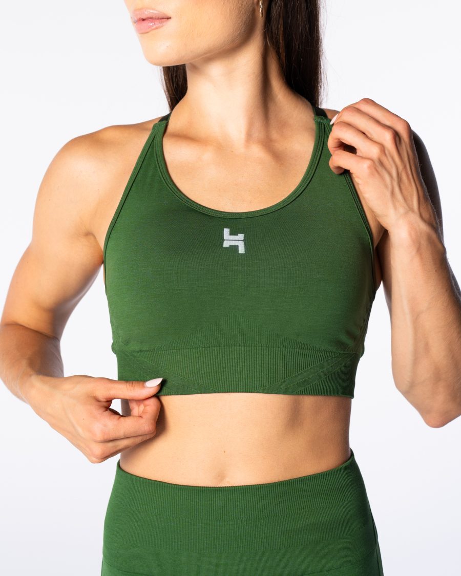 • Biustonosz sportowy Push Up w głębokim kolorze zielonym