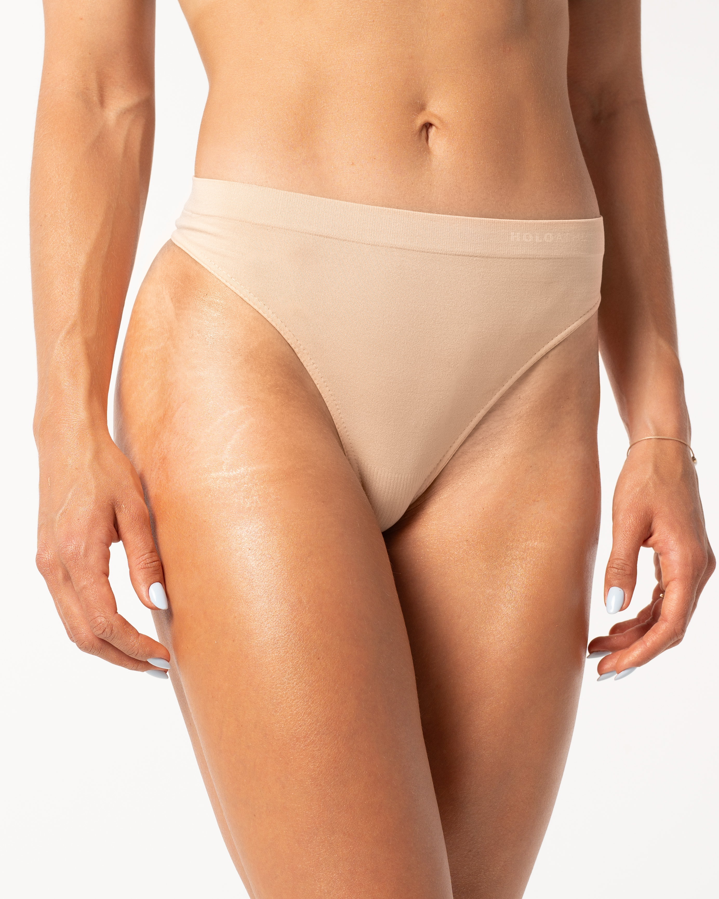 Majtki bezszwowe stringi – beżowe