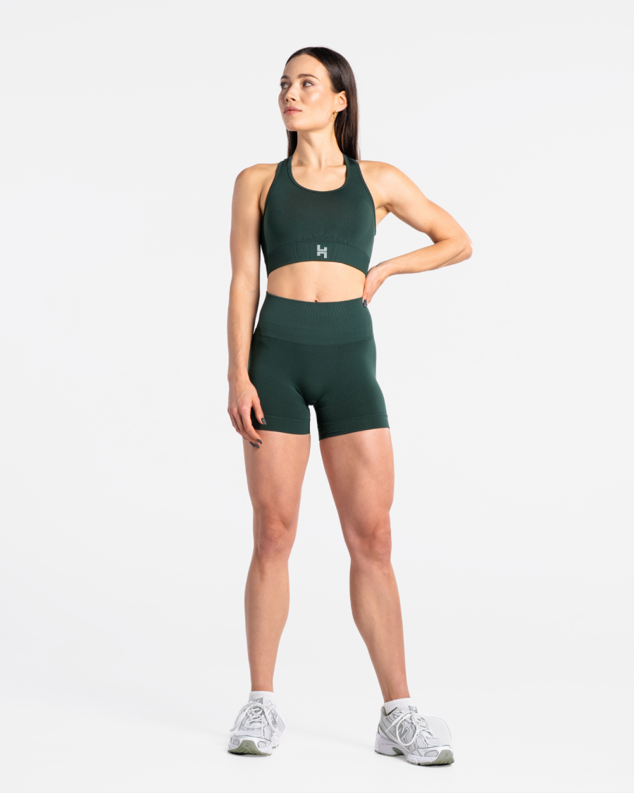 Szorty damskie Impact zielone wykonane są z najwyższej jakości włoskiego przędzy, która łączy miękkość z wyjątkową odpornością. To spodenki sportowe premium, które sprostają intensywnym treningom i codziennemu użytkowaniu. Stworzone w Polsce z dbałością o każdy detal – na lata, nie na sezon.